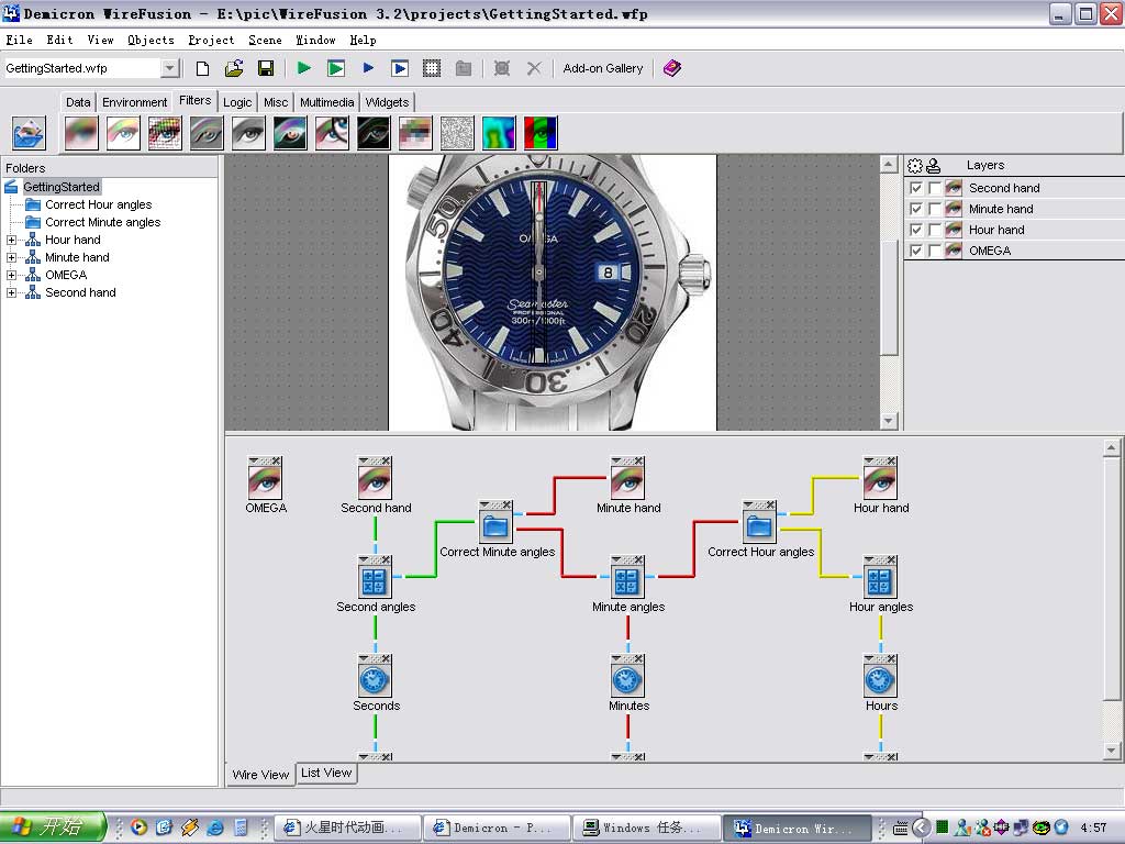 又用了一下,人家里面有7个源文件可以学习,看了一下,下面结构图像MAYA FUTION,双击图标就可以进入属性栏调节,里面还设计编程,很像Authorware的结构~呵呵,好象要很多很多美圆吧,不过看看他网站上的效果,很不错的~可能国内没多少人会用这个吧~~
